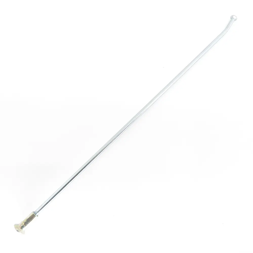Виготовлена з високоякісної сталі, ця спиця відрізняється підвищеною міцністю, стійкістю до корозії та високою еластичністю. Сталь, що використовується у виробництві, проходить спеціальну термічну обробку, яка надає їй виняткову стійкість до циклічних навантажень – факторів, які неминуче виникають під час експлуатації мотоцикла на різних дорогах і в різних умовах. Завдяки цьому спиця здатна витримувати значні розтягуючі та стискаючі зусилля, не втрачаючи своїх початкових фізичних властивостей та геометрії. Це гарантує її надійність протягом усього терміну служби, навіть при інтенсивній експлуатації. Поверхня спиці має спеціальне захисне покриття, яке забезпечує додатковий бар'єр проти агресивного впливу зовнішнього середовища: вологи, бруду, пилу, абразивних частинок та хімічних реагентів, що можуть зустрічатися на дорогах. Це покриття не тільки значно продовжує термін служби спиці, але й зберігає її естетичний вигляд, запобігаючи іржі та потьмянінню. Висока якість різьблення, сформованого методом холодної накатки, гарантує надійне та міцне з'єднання з ніпелем, запобігаючи його самовідкручуванню навіть при сильній вібрації та ударних навантаженнях, а також забезпечуючи стабільне та точне натягування спиці. Кожен етап виробництва ретельно контролюється, щоб гарантувати, що кожна спиця відповідає найвищим стандартам якості та безпеки.