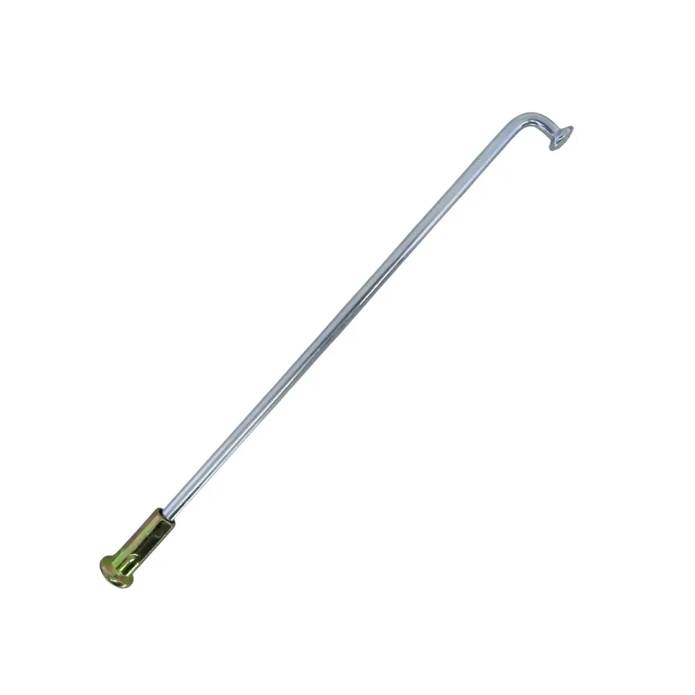 Виготовлена з високоміцної сталі, ця спиця має підвищену стійкість до корозії та механічних пошкоджень, що є особливо важливим для мототехніки, що експлуатується в різних погодних умовах. Її якісне покриття (зазвичай цинкування або хромування) додатково захищає від зовнішніх впливів, зберігаючи естетичний вигляд та функціональність протягом тривалого часу.