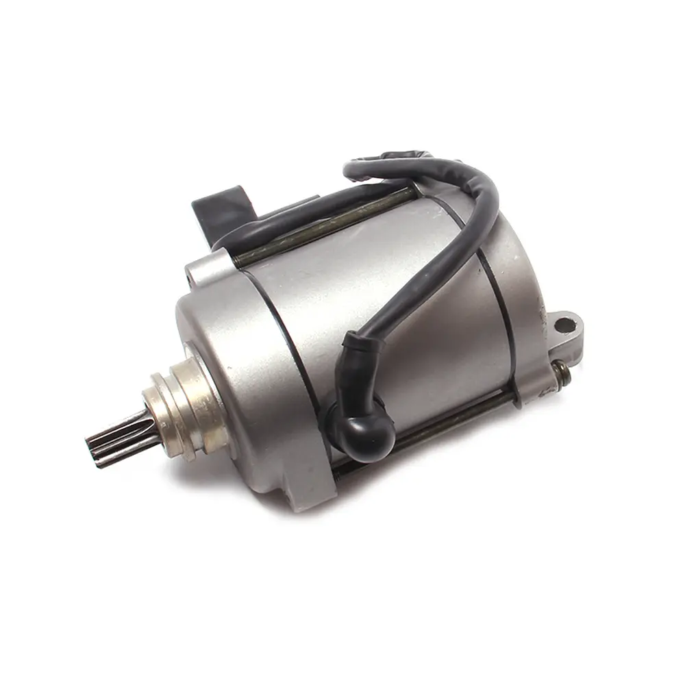 При виробництві цього стартера використовуються тільки перевірені та високоякісні матеріали. Корпус виконаний з міцного алюмінієвого сплаву, що забезпечує відмінний захист внутрішніх механізмів від механічних пошкоджень, вологи та пилу, при цьому зберігаючи легку вагу. Внутрішні компоненти, такі як обмотки електродвигуна, виготовлені з чистої міді, що гарантує високу провідність та ефективну передачу електричної енергії. Зубчастий механізм (бендикс) виконаний із загартованої сталі для забезпечення максимальної зносостійкості та надійності під час зачеплення з маховиком двигуна. Сальники та ущільнювачі виготовлені з якісних полімерних матеріалів, що запобігають проникненню бруду та води всередину механізму, що є надзвичайно важливим для мототехніки, яка експлуатується в різних умовах. Кожна деталь проходить строгий контроль якості на всіх етапах виробництва, від підбору сировини до фінальної збірки, що дозволяє гарантувати бездоганну роботу виробу.
