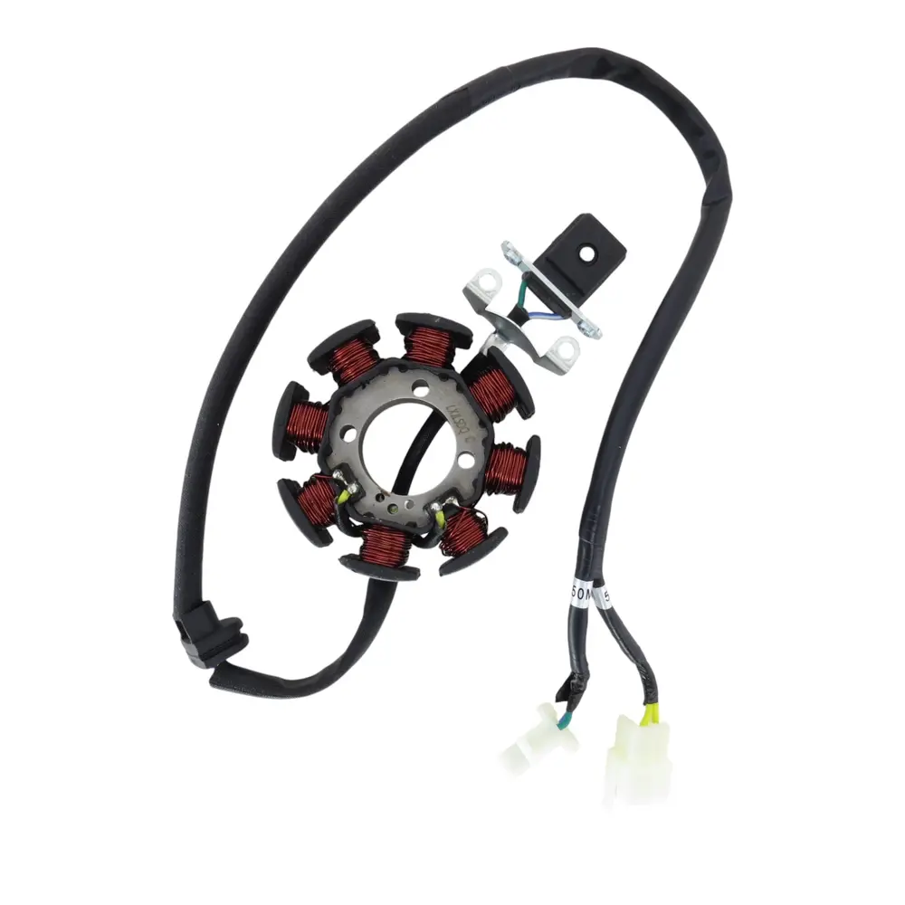 Враховуючи, що статор є постійно діючою частиною генератора, що піддається впливу високих температур та механічних навантажень, його якість має першочергове значення. Наш статор відповідає або перевершує стандарти оригінальних компонентів, забезпечуючи безкомпромісну надійність. Він розроблений для прямої заміни, що спрощує процес встановлення та дозволяє швидко повернути ваш мотоцикл у робочий стан.