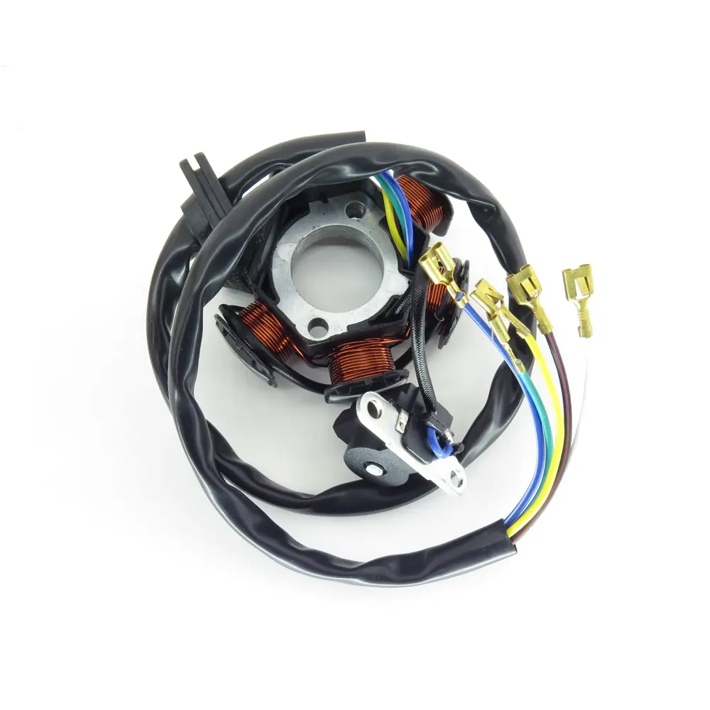 - Високоякісні матеріали: Статор виготовлений з добірної міді для обмоток, що гарантує відмінну електропровідність та мінімальні втрати енергії. Якісна ізоляція та міцний металевий сердечник забезпечують довговічність та стійкість до перегріву, вібрацій та інших агресивних умов експлуатації, характерних для мототехніки. Використання преміальних матеріалів значно подовжує термін служби компонента, захищаючи його від передчасного зносу.