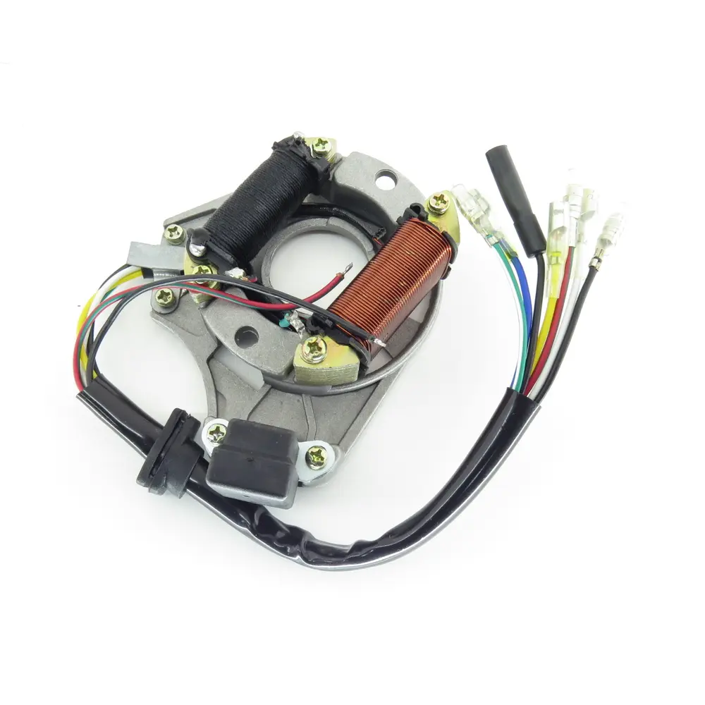 Модель статора Delta (1+1 котушок) ZUNA розроблена для забезпечення оптимальної продуктивності та надійності. Конфігурація "1+1 котушок" вказує на специфічну конструкцію обмоток, яка може бути адаптована для певних типів двигунів або систем, де потрібне окреме або спеціалізоване генерування енергії для різних цілей. Така конструкція часто зустрічається в системах, що потребують ефективного та стабільного подавання струму для конкретних функцій, наприклад, для системи запалювання та окремої зарядки акумулятора або живлення освітлення. Ця конфігурація забезпечує ефективну передачу енергії, мінімізуючи втрати та підвищуючи загальну продуктивність електричної системи мотоцикла. Бренд ZUNA відомий своєю зосередженістю на якості та довговічності, пропонуючи запчастини, які відповідають або перевершують стандарти оригінальних комплектуючих. Це гарантує, що новий статор буде ідеально інтегрований у систему вашого мотоцикла, забезпечуючи бездоганну роботу протягом тривалого часу.