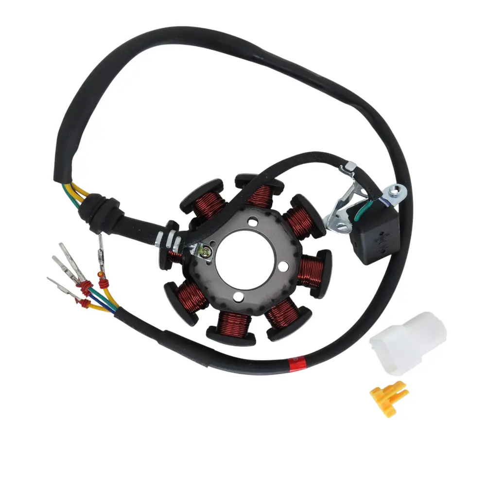 - Ідеальна сумісність: Цей статор розроблений спеціально для мотоциклів KOVI 250-4Т модифікації PR250 ADVANCE, що гарантує точне прилягання, легкість установки та повну відповідність електричним параметрам вашого двигуна.