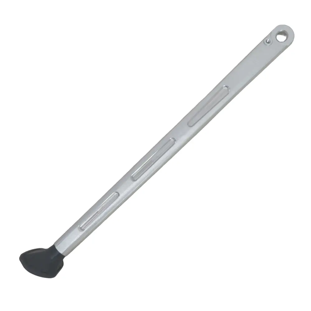 Ключовою особливістю даної бокової опори є наявність широкого "п'ятака" – спеціальної опорної площадки на кінці стійки. Цей елемент відіграє критично важливу роль у забезпеченні стабільності мотоцикла, особливо на нестабільних поверхнях. Завдяки збільшеній площі контакту з землею, "п'ятак" запобігає провалюванню опори в м'який ґрунт, пісок, гравій, мокру траву або гарячий асфальт. Це значно знижує ризик падіння мотоцикла під час стоянки, що може призвести до дорогого ремонту та пошкодження цінних елементів.