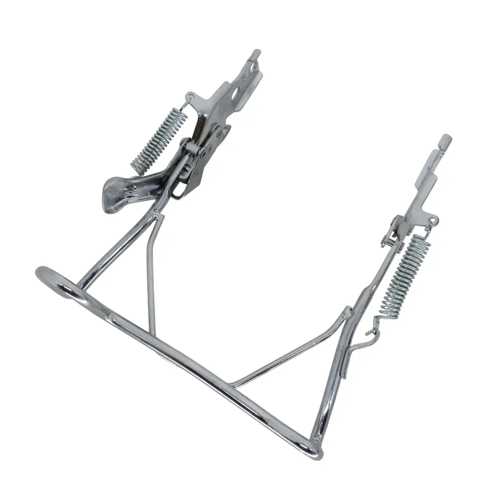 - Максимальна стабільність: Забезпечує надійну фіксацію мотоцикла в вертикальному положенні, що виключає ризик його падіння при парковці або під час обслуговування.