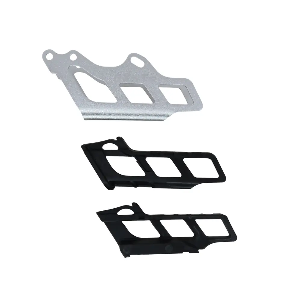 Уловлювач ланцюга виготовлений з високоміцного полімерного матеріалу, який відрізняється підвищеною стійкістю до ударів, абразивного зносу та впливу агресивних середовищ. Це гарантує тривалий термін служби уловлювача навіть в екстремальних умовах експлуатації, будь то інтенсивні поїздки по бездоріжжю або щоденне використання в міському циклі. Крім того, кронштейни та кріпильні елементи, що входять до комплекту, виготовлені з якісних металів, що забезпечує міцне та надійне кріплення уловлювача до рами або маятника мотоцикла. Ця комбінація матеріалів гарантує максимальну ефективність та довговічність компонента, забезпечуючи спокій та впевненість на дорозі.