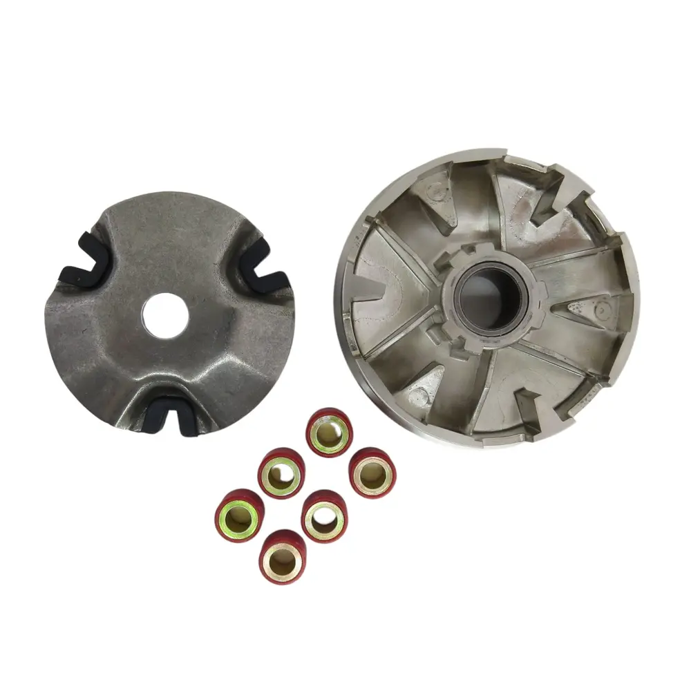 Цей варіатор виготовлено з використанням високоміцних металевих сплавів, які витримують значні механічні навантаження, постійні тертя та вплив високих температур, що неминуче виникають під час інтенсивної роботи трансмісії. Точність виготовлення кожної деталі, від ведучого шківа до грузиків та втулки, є абсолютно критично важливою для коректного функціонування всієї системи. Грузики варіатора, які рухаються в спеціальних пазах, відіграють ключову роль у зміні передавального відношення: при збільшенні обертів двигуна відцентрова сила виштовхує їх назовні, розсуваючи шків і зменшуючи передачу, а при зниженні обертів пружина стискає шків, збільшуючи передачу. Якість цих компонентів безпосередньо впливає на плавність і швидкість реакції трансмісії на зміни обертів двигуна, забезпечуючи миттєвий відгук на акселератор.
