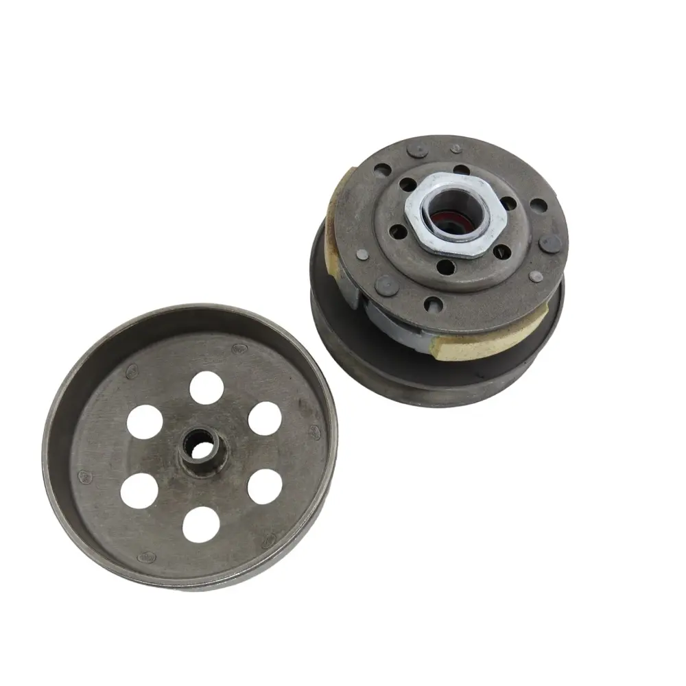 Задній варіатор, який також часто називають заднім зчепленням або торкдрайвером в зборі, є ключовим елементом трансмісії скутера. Його основна функція – автоматично змінювати передатне відношення між двигуном і заднім колесом, адаптуючись до швидкості руху та навантаження. Це забезпечує максимальну ефективність двигуна, дозволяючи йому працювати в оптимальному діапазоні обертів, незалежно від швидкості. Конструктивно задній варіатор складається з рухомих та нерухомих шківів, відцентрового зчеплення з фрикційними колодками, торкдрайвера (механізму зміни діаметра шківів) та потужної пружини, що регулює притиск. Завдяки злагодженій роботі цих частин, скутер здатний плавно набирати швидкість, підтримуючи постійний рівень потужності без ривків і провалів, характерних для механічних коробок передач. Це забезпечує неперевершений комфорт їзди та оптимальну паливну економічність.