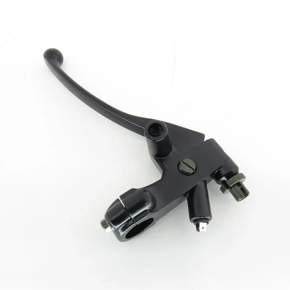 Важіль зчеплення в зборі (лівий) V150A — це комплексний вузол, призначений для встановлення на кермо з лівого боку. Він включає в себе сам важіль, корпус кріплення (перч) та, зазвичай, механізм регулювання вільного ходу троса, а також може містити мікровимикач для блокування запуску двигуна без витискання зчеплення (нейтраль-безпека). Деталь виготовлена з високоміцного алюмінієвого сплаву, що забезпечує оптимальне поєднання легкості та стійкості до механічних навантажень. Ергономічний дизайн важеля сприяє комфортному хвату та мінімізує втому руки під час тривалих поїздок, а точна геометрія гарантує швидку та ефективну реакцію системи зчеплення.