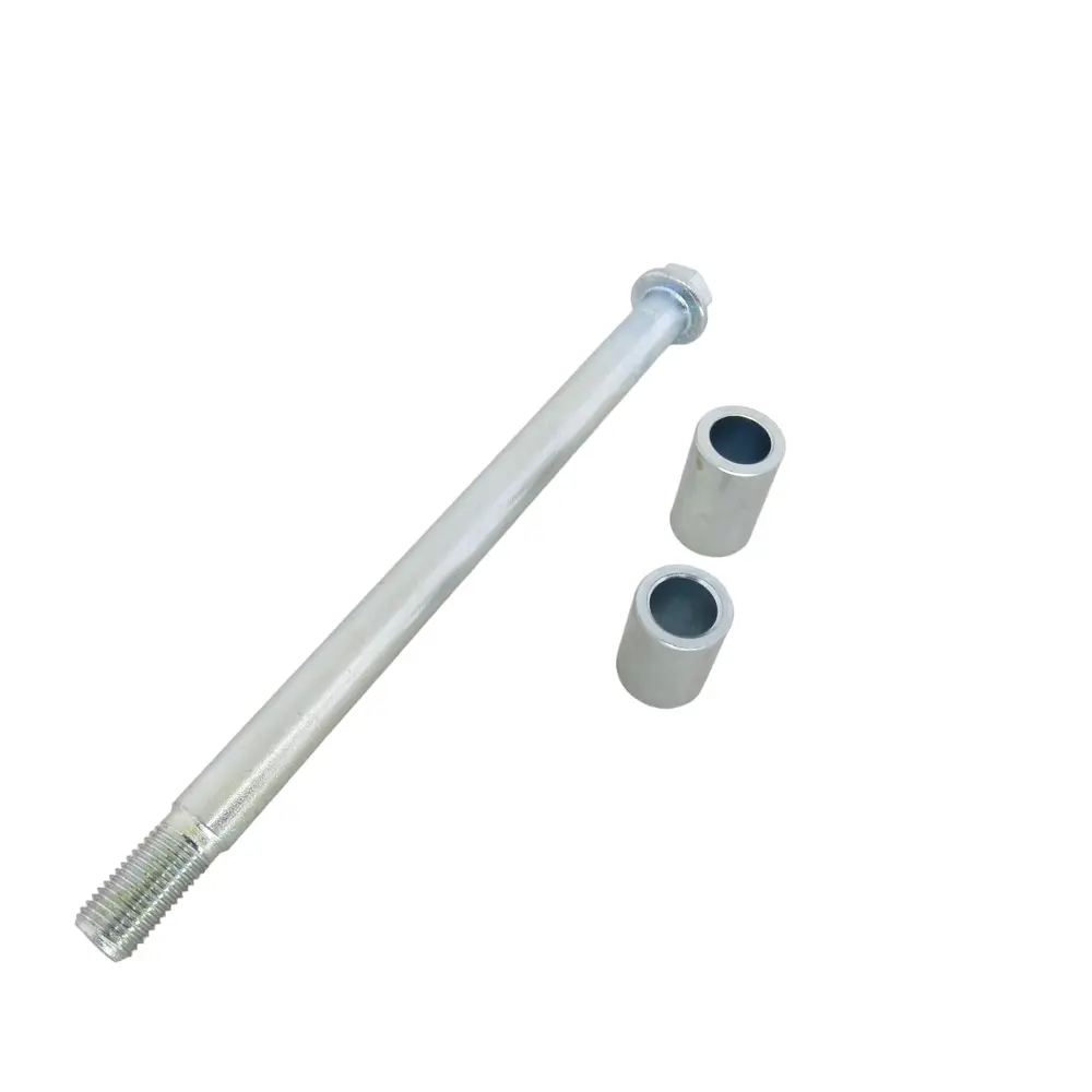 У комплект постачання входять не тільки вісь, але й втулки (ліва та права). Втулки відіграють ключову роль у забезпеченні плавного обертання колеса, зменшуючи тертя між віссю та елементами маточини чи маятника. Вони захищають більш дорогі компоненти від передчасного зносу та забезпечують правильний люфт колеса. Наявність втулок у комплекті робить цей товар повноцінним рішенням для ремонту або заміни, усуваючи необхідність пошуку додаткових деталей. Комплект "л+п" означає, що ви отримуєте повний набір для обох сторін, що забезпечує симетричне та правильне кріплення.
