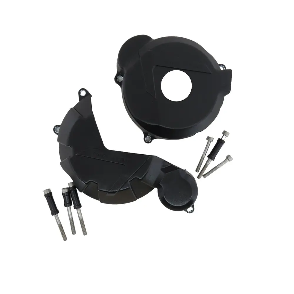 - Міцність та довговічність: Захист виготовлено з композитних матеріалів, що забезпечують підвищену ударостійкість та стійкість до абразивного зносу. Це гарантує ефективний захист кришок двигуна від подряпин, відколів та сильних ударів, які можуть виникнути під час падіння мотоцикла або зіткнення з перешкодами. Спеціально розроблені точки кріплення рівномірно розподіляють енергію удару, мінімізуючи навантаження на самі кришки двигуна.