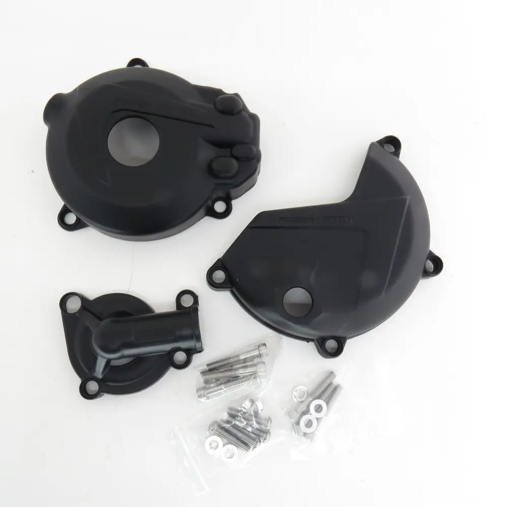 - Максимальний захист: Комплект складається з трьох елементів, що забезпечують комплексний захист найвразливіших частин двигуна – кришок зчеплення, генератора (запалювання) та водяної помпи. Кожен елемент спроектований таким чином, щоб ідеально облягати відповідну кришку, мінімізуючи ризик пошкодження при ударах. Це дозволяє уникнути відколів, подряпин та пробиття, які можуть стати причиною значних фінансових витрат.