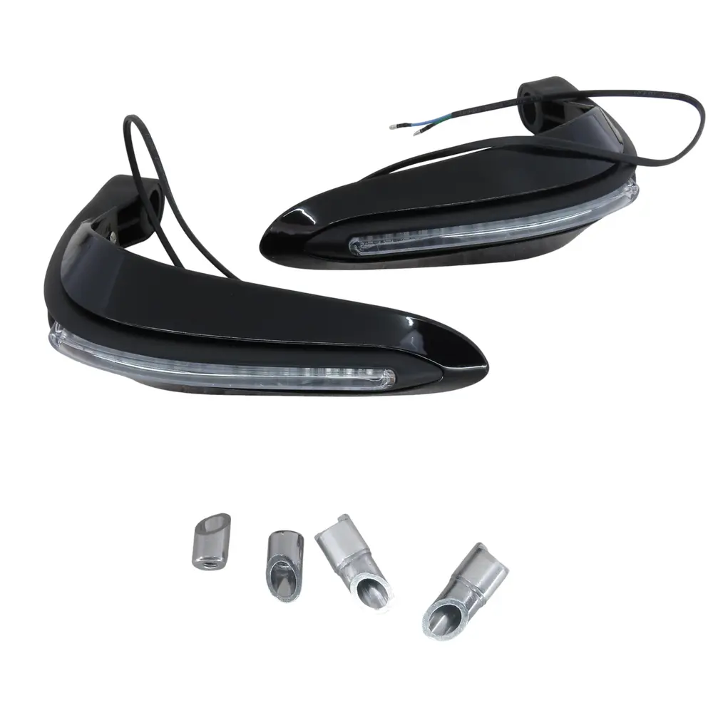 - Захист від погодних умов: Холодний вітер, дощ, сніг, град — все це може значно знизити комфорт та чутливість рук, що негативно впливає на керування мотоциклом. Аеродинамічна форма захисту створює ефективний щит, відводячи потік повітря та вологу, допомагаючи зберігати руки в теплі та сухості. Це дозволяє водієві залишатися зосередженим на дорозі та підтримувати повний контроль над мотоциклом навіть у несприятливих погодних умовах, що є запорукою безпечної подорожі.