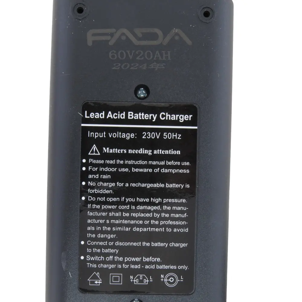 - Оптимальна вихідна потужність: З вихідною напругою 60В та струмом, адаптованим для батарей 20Аг, цей пристрій забезпечує ідеальний баланс між швидкістю зарядки та безпекою, не перевантажуючи акумулятор.