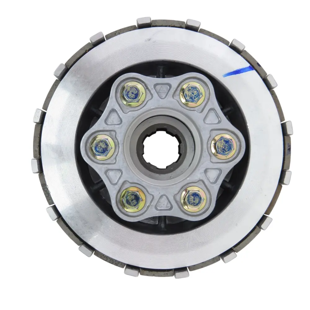 - Високоякісні фрикційні диски: Виготовлені зі спеціальних композитних матеріалів, які забезпечують відмінне зчеплення, стійкість до перегріву та тривалий термін служби. Це запобігає проковзуванню зчеплення навіть при інтенсивних навантаженнях, характерних для бездоріжжя та спортивної їзди. Матеріали фрикційних накладок розроблені для роботи в умовах високих температур та постійного тертя в масляній ванні, що гарантує стабільну роботу та мінімальний знос.