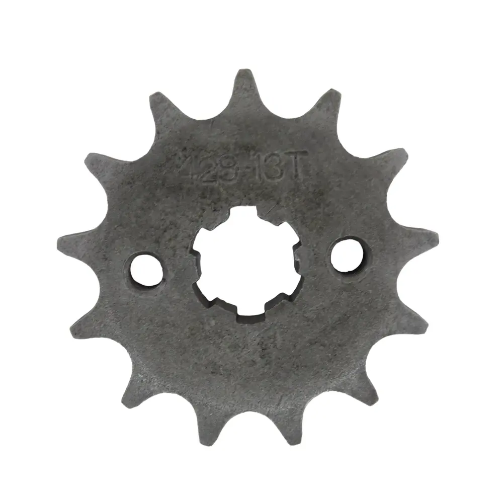 Дана передня зірка має позначення 428*13, що несе в собі важливу технічну інформацію. Число 428 вказує на стандарт ланцюга, який використовується на квадроциклах Orix125/150. Цей стандарт визначає крок ланцюга (відстань між центрами осей роликів) і його ширину, забезпечуючи сумісність та надійне зчеплення. Ланцюги типу 428 відомі своєю міцністю та надійністю, що робить їх ідеальними для використання в умовах підвищених навантажень, характерних для квадроциклів. Це стандарт, який забезпечує оптимальний баланс між міцністю на розрив, стійкістю до зносу та ефективністю передачі, що є критично важливим для довгої та безвідмовної роботи трансмісії.