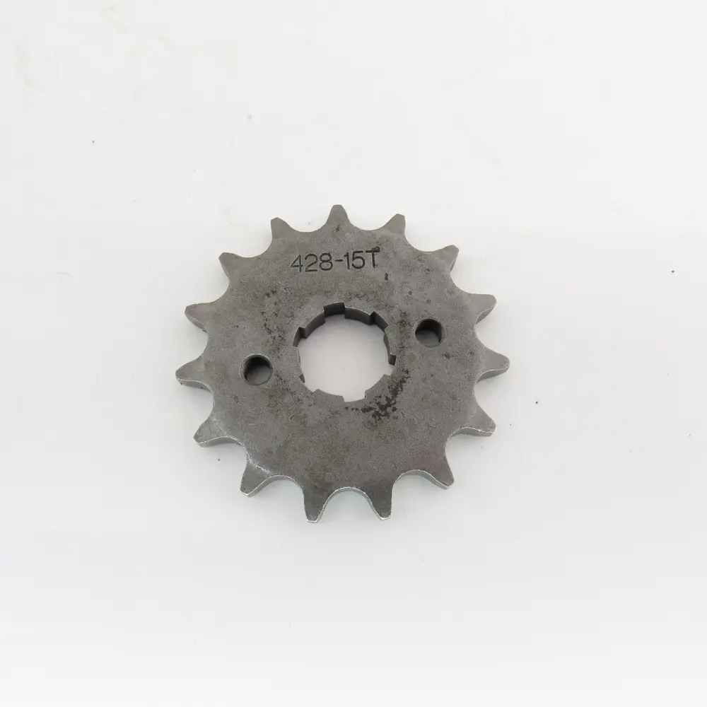 - 15 зубів: Кількість зубів на передній зірці (15Z) безпосередньо впливає на передатне число трансмісії. Зірка з 15 зубами зазвичай забезпечує хороший баланс між прискоренням та максимальною швидкістю для мотоцикла Zongshen ZS125J. Вона дозволяє ефективно використовувати потужність двигуна як у міському трафіку, так і під час подорожей, забезпечуючи комфортну їзду та економію палива.