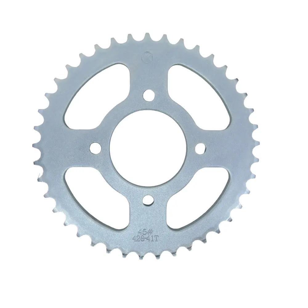 - Кількість зубів 41: Вибір зірки з 41 зубом є результатом інженерних розрахунків для забезпечення оптимального передавального числа на моделі Musstang MT250GY-8 (Grader 250). Це число зубів дозволяє досягти збалансованих характеристик: достатнього крутного моменту для динамічного старту та впевненого руху по бездоріжжю, а також прийнятної максимальної швидкості та економічності палива під час тривалих поїздок по шосе. Регулюючи кількість зубів на задній зірці, можна змінити динаміку мотоцикла, надавши йому або більше тяги, або вищу максимальну швидкість. 41 зуб є "золотою серединою" для універсального використання, що дозволяє мотоциклу бути однаково ефективним як на міських вулицях, так і на легких ґрунтових дорогах.