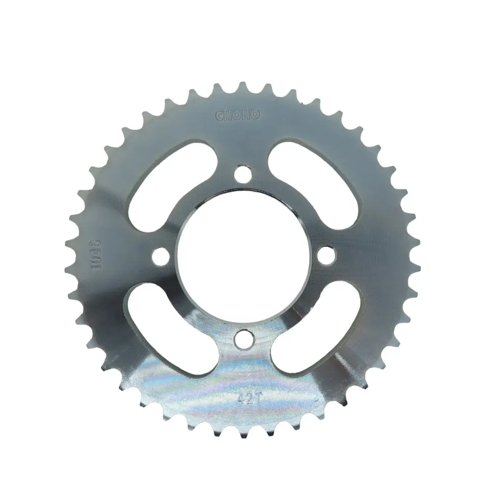 Кількість зубів — 42 — це оптимальний вибір для мотоциклів Shineray XY150-17 та Shineray XY200-4, що дозволяє досягти збалансованого співвідношення між прискоренням та максимальною швидкістю. Така конфігурація забезпечує чудові показники під час їзди в міських умовах, де важлива динаміка, на трасі, де потрібна стабільність, а також при подоланні легкого бездоріжжя, де доцільна гарна тяга. Оптимальне співвідношення зубів допомагає зберегти ресурс двигуна та підвищити комфорт під час поїздок.