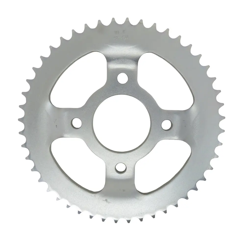 - Кількість зубів 48: 48 зубів на задній зірці є оптимальним рішенням для досягнення збалансованих характеристик. Ця конфігурація зазвичай забезпечує відмінне прискорення, що особливо важливо при їзді в міському циклі або на пересіченій місцевості. При цьому вона дозволяє підтримувати достатньо високу крейсерську швидкість без надмірного навантаження на двигун. Заміна зірки з іншою кількістю зубів може суттєво змінити поведінку мотоцикла, тому важливо дотримуватися рекомендованих виробником параметрів або усвідомлено експериментувати з налаштуваннями для досягнення бажаного результату.