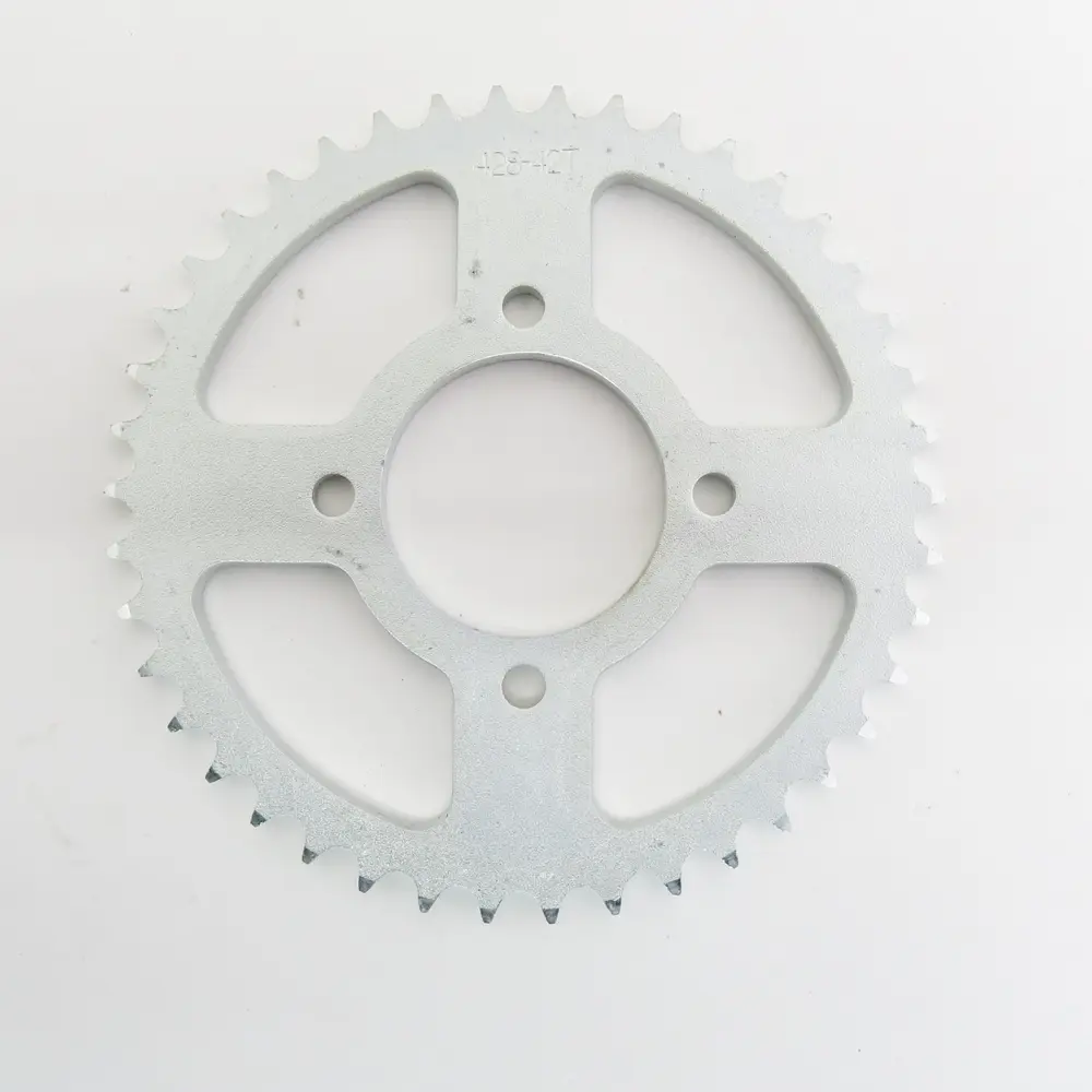 Ця задня зірка виготовлена з високоміцної сталі, що пройшла спеціальну термічну обробку для досягнення максимальної зносостійкості та довговічності. Це критично важливо, адже зірка постійно піддається значним навантаженням, тертю та вібраціям під час руху. Точна геометрія зубів забезпечує плавне зачеплення з ланцюгом, мінімізуючи втрати потужності та продовжуючи термін служби як самої зірки, так і ланцюга.