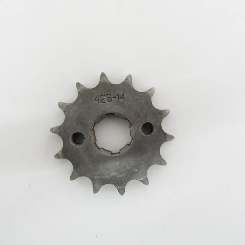 Маркування "428" вказує на стандартний крок ланцюга, який широко використовується на мотоциклах класу 125-250 куб.см. Це гарантує сумісність з більшістю стандартних ланцюгів для Zongshen ZS125J. "14T" означає 14 зубців, що є оптимальним значенням для багатьох моделей цього класу, забезпечуючи гарний баланс між прискоренням та максимальною швидкістю. Зміна кількості зубців на передній зірці дозволяє тонко налаштувати динаміку мотоцикла під індивідуальні потреби райдера: менше зубців – краще прискорення, більше зубців – вища максимальна швидкість.