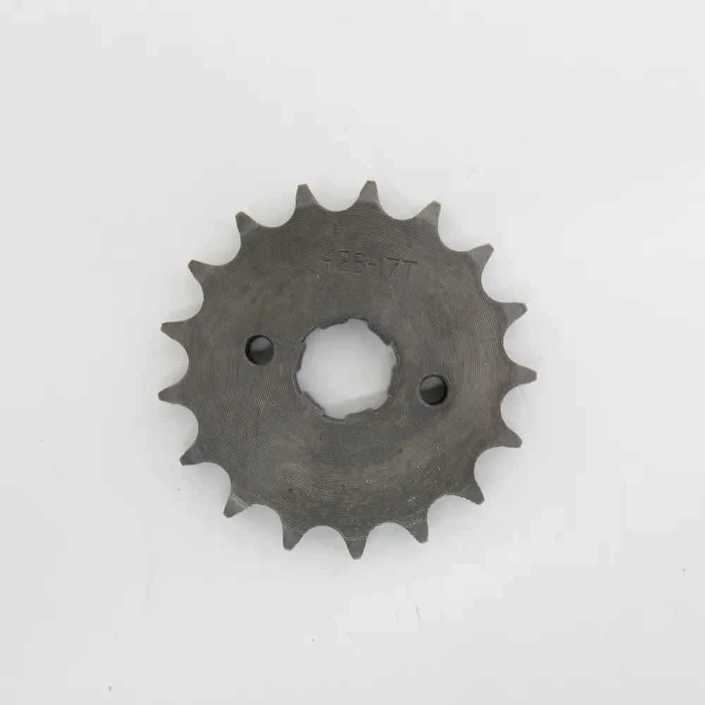 Маркування 428-17T є ключовим для розуміння характеристик цієї зірки. Число «428» вказує на тип ланцюга, з яким зірка сумісна. Це один з найпоширеніших стандартів для легких та середніх мотоциклів, відомий своєю міцністю, надійністю та довговічністю. Цей тип ланцюга широко використовується в техніці з об'ємом двигуна до 150-200 куб.см, що робить його ідеальним для Zongshen ZS125J. А «17T» означає кількість зубів – у даному випадку їх 17. Кількість зубів передньої зірки безпосередньо впливає на передавальне число трансмісії, що, своєю чергою, визначає динамічні характеристики мотоцикла. Зірка на 17 зубів забезпечує відмінний баланс між прискоренням та максимальною швидкістю для Zongshen ZS125J, дозволяючи мотоциклу бути спритним у міському трафіку та комфортним на відкритих ділянках дороги. Зміна кількості зубів може суттєво змінити динаміку мотоцикла, тому важливо обирати зірку, яка відповідає вашим потребам та стилю їзди, або ж відповідає заводським параметрам для оптимальної роботи та збереження балансу потужності.